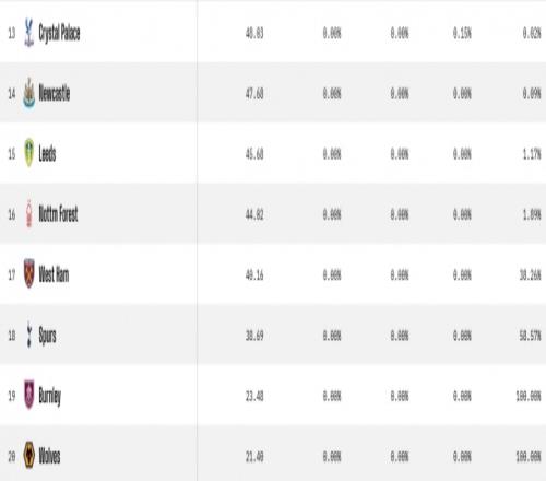 最后4輪大逃殺!熱刺贏球后降級概率仍58%,西漢姆38%森林1.89%