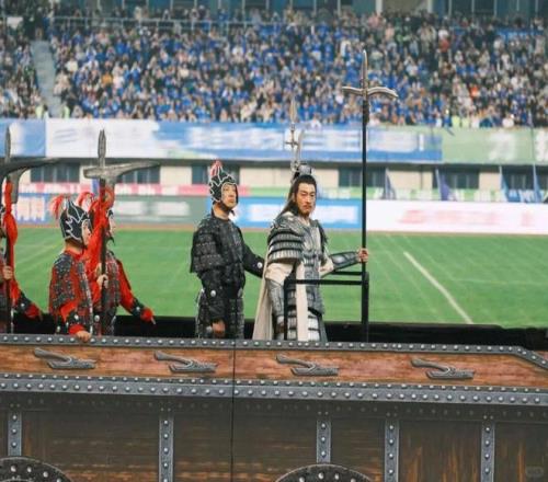 跟南京的比賽前,宿遷文旅官宣將邀請何潤東到場助陣,那時網友只單純覺得熱鬧有趣,還調侃說何潤東演項羽時沒護住虞姬、演吳聘時沒護住周瑩、演步驚云時沒護住孔慈,這次也未必能護住宿遷。 但顯然,網友低估了西楚霸王之于宿遷人的號召力。