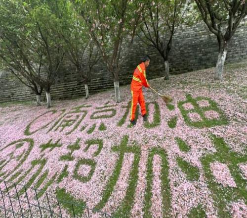 就像前幾天,引發(fā)熱議的蘇超嘉賓除了何潤東,還有劉金頂,他是南京玄武湖邊的一位管養(yǎng)員。在管理落花時,他用掃帚畫出了為南京隊、為蘇超加油的圖案。