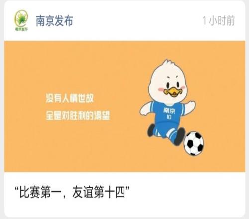 去年的“比賽第一,友誼第十四”口號十分出圈。(圖/南京發(fā)布)