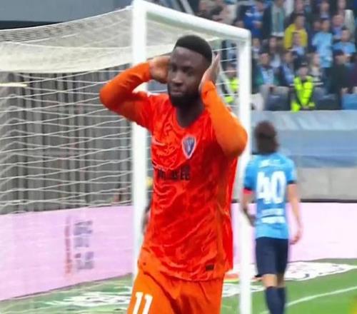 第26分鐘,李源一越位位置接球調(diào)整打門偏出。第36分鐘,海牛前場搶斷后,埃朱馬利用身體優(yōu)勢卡住防守,隨后冷靜推射破門,海牛2-0領(lǐng)先!