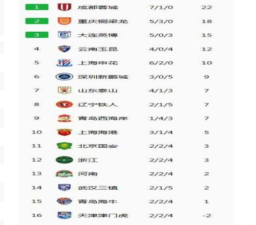 最終,重慶銅梁龍主場1-1戰(zhàn)平青島西海岸,積18分,繼續(xù)排名第二;西海岸積7分,排名第9。