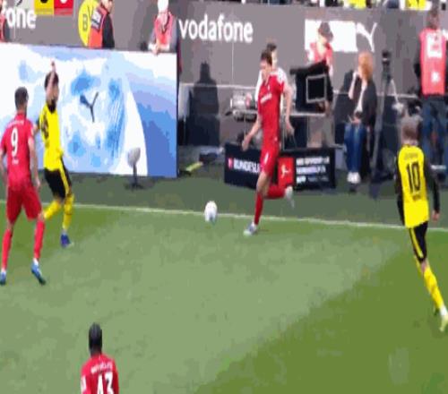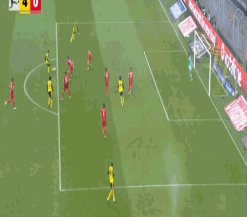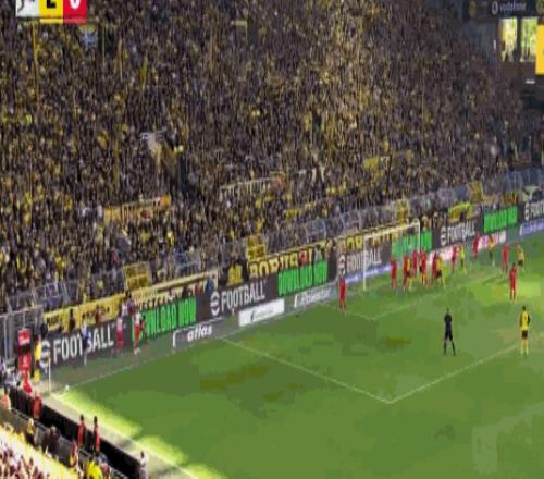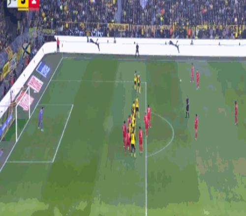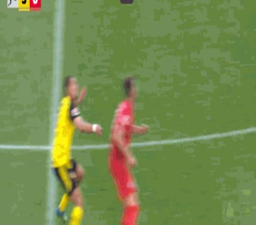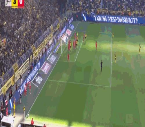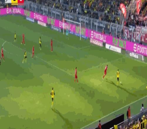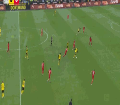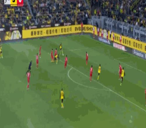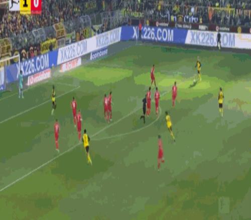 第8分鐘,小紅書(shū)丨本塞拜尼后場(chǎng)長(zhǎng)傳,拜爾破門(mén),多特1-0