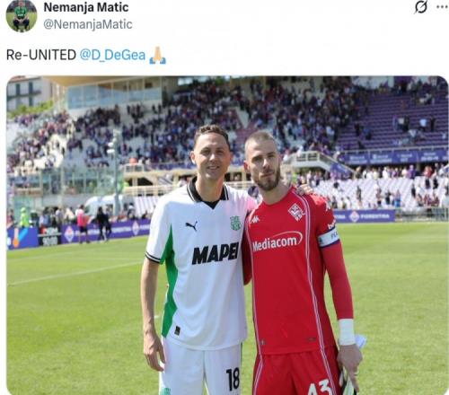 老友重聚!薩索洛客場(chǎng)戰(zhàn)平佛羅倫薩,馬蒂奇曬和德赫亞合照
