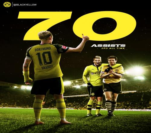 憑借此次助攻,布蘭特在多特的助攻數(shù)超越里肯,僅次于羅伊斯(429場131助)和莫勒(301場100助)。