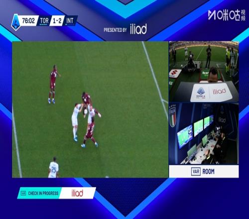 體育播報04月27日宣 意甲第34輪,國米客戰(zhàn)都靈。75分鐘,VAR介入,主裁親自觀看回放,判罰奧古斯托禁區(qū)內(nèi)手球,都靈獲得點球。
