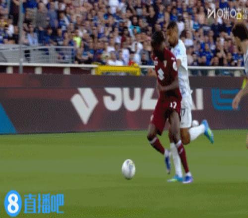第20分鐘,索默后場(chǎng)長(zhǎng)傳,博尼爭(zhēng)下皮球后帶球推進(jìn)到弧頂,右腳低射被門將抱住↓