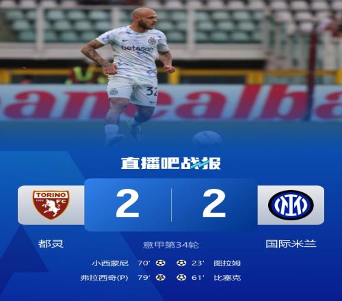 體育播報(bào)4月27日宣 北京時(shí)間0:00,意甲第34輪都靈vs國際米蘭。上半場(chǎng),迪馬爾科助攻小圖拉姆破門。下半場(chǎng),迪馬爾科助攻雙響,比塞克頭球破門!小西蒙尼扳回一球;奧古斯托送點(diǎn),弗拉西奇點(diǎn)射扳平比分!最終,國米2-2戰(zhàn)平都靈,意甲剩4輪10分領(lǐng)跑!