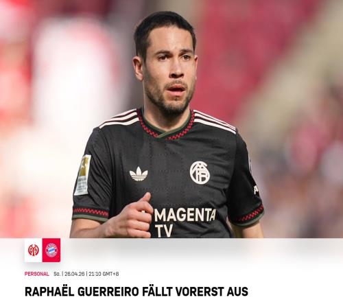 經(jīng)拜仁慕尼黑醫(yī)療部門檢查確認(rèn),拉斐爾·格雷羅在對陣美因茨的比賽中,左大腿后側(cè)肌肉出現(xiàn)輕微撕裂。格雷羅將因此暫時缺陣。