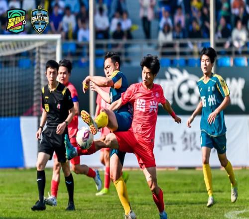 紹興隊繼續(xù)發(fā)起猛攻,35號沈浩瀾在禁區(qū)混戰(zhàn)中扳回一球。