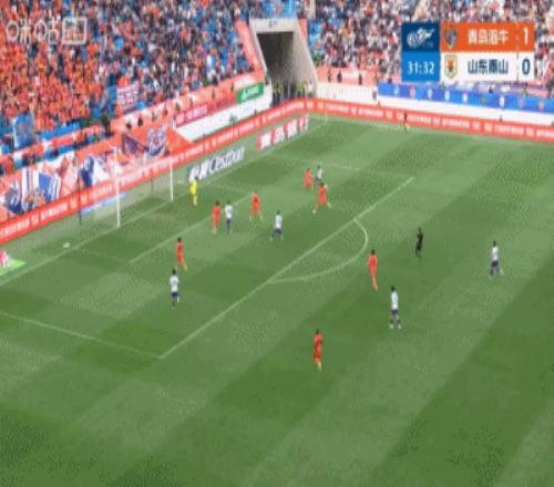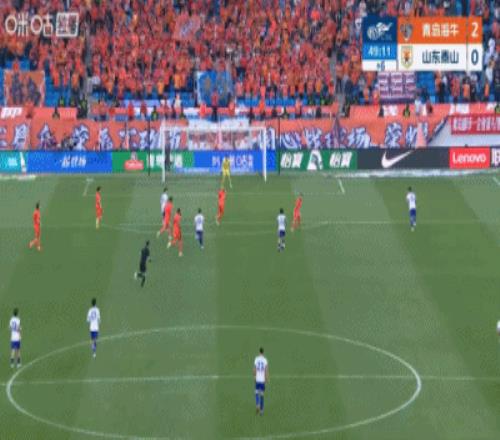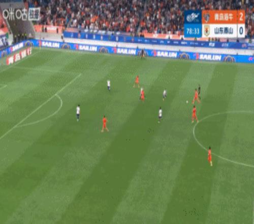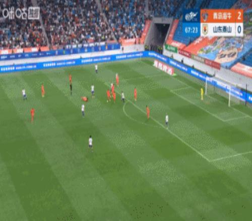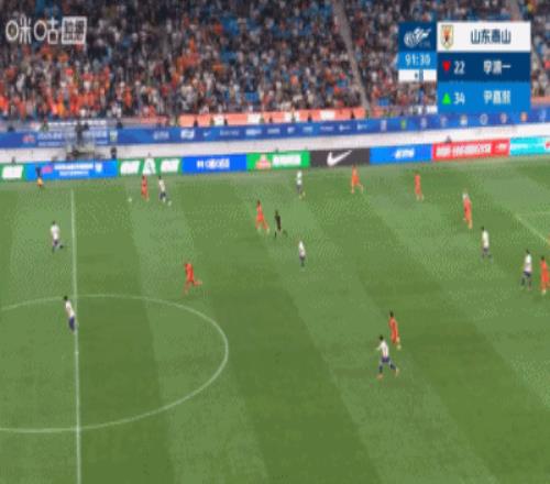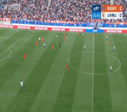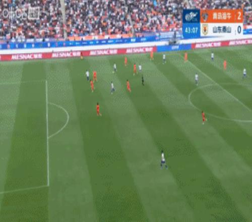 第43分鐘,泰山右路傳中到后點,劉洋擺渡回門前擊中橫梁,門前羅卡補射再打被牟鵬飛門線極限撲救,隨后安杰爾科維奇解圍出底線↓