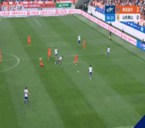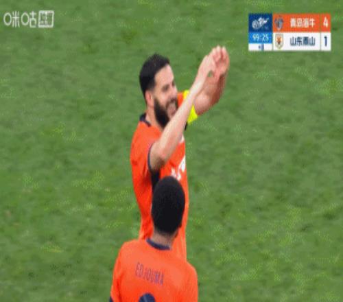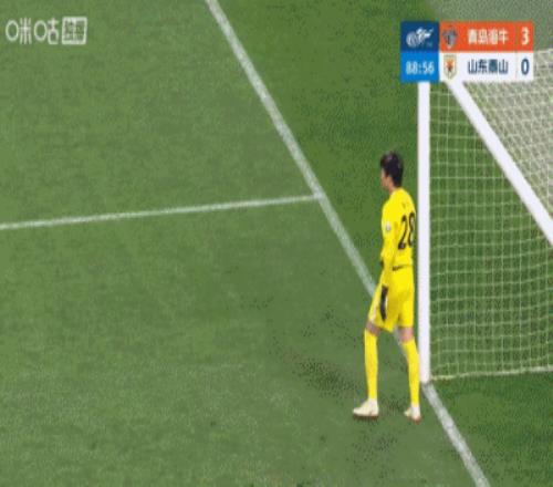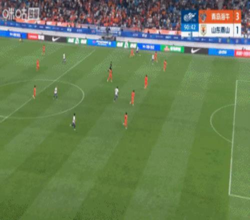 下半場補時8分鐘。最終全場比賽結束,青島海牛4-1山東泰山。