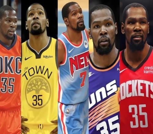 杜蘭特職業(yè)生涯效力雷霆、勇士、籃網(wǎng)、太陽、火箭等隊,僅在勇士搭檔庫里、湯普森拿到兩座總冠軍,其余階段不僅成績平平,還幾乎和每支老東家都傳出過不愉快。