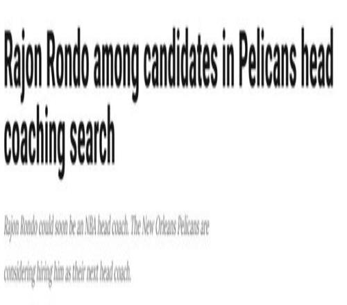 北京時(shí)間4月27日,據(jù)NBA記者馬克-斯坦恩消息,新奧爾良鵜鶘隊(duì)正認(rèn)真考慮聘請(qǐng)NBA后衛(wèi)拉簡(jiǎn)-隆多出任球隊(duì)主教練,隆多也是該職位的潛在候選人之一。