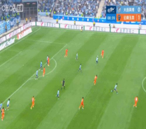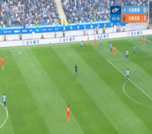 上半場比賽結(jié)束,大連英博0-3云南玉昆。