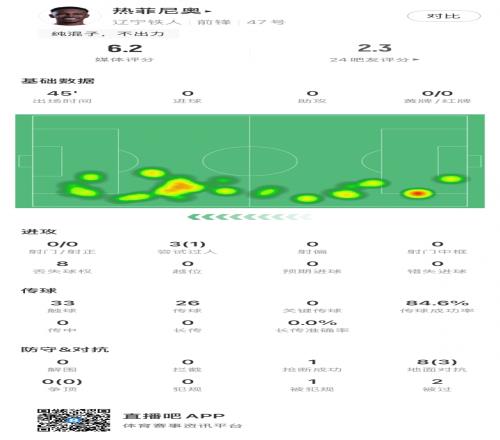 熱菲尼奧本場(chǎng)數(shù)據(jù)↓
