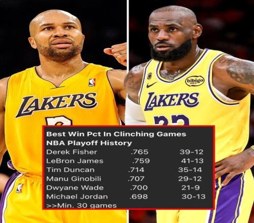 老詹在有機會終結(jié)系列賽的比賽中勝率75.9%歷史第二&僅次費舍爾