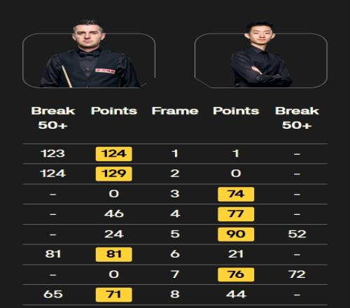 第一階段戰(zhàn)罷,吳宜澤4-4馬克·塞爾比,雙方的第二階段將在凌晨兩點開始。