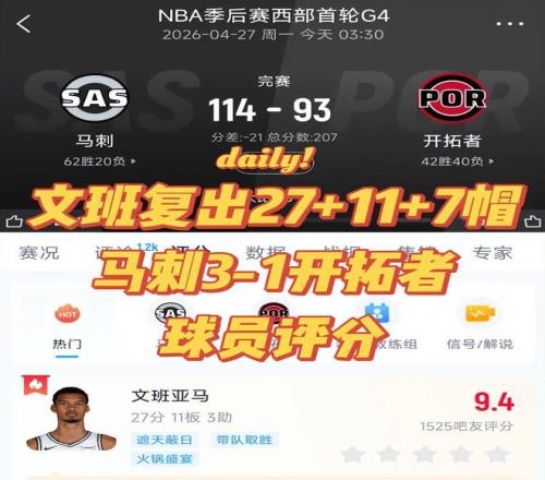 誰也沒想到,一場看似尋常的馬刺對陣開拓者的G4較量,終場114:93的懸殊比分塵埃落定后,竟如投入湖心的巨石,激起整個西部季后賽版圖的劇烈震蕩。