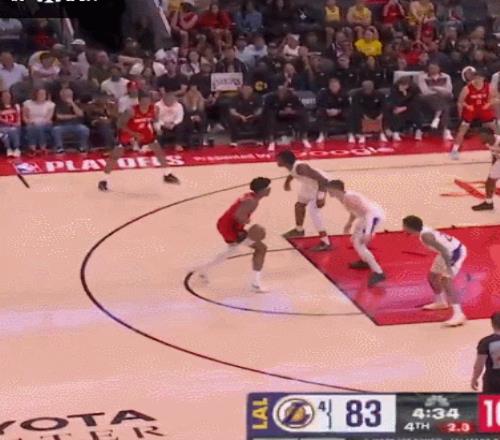 到了第四節(jié),阿門更是給大伙兒表演了一把什么叫“非人類的身體天賦”。當(dāng)時(shí)阿爾佩倫·申京傳了一個(gè)極高的球,阿門直接舒展長臂在空中攬?jiān)拢槃菥褪且挥浕仡^望月般的反向拉桿上籃。這一套逆天的操作,留給一防的盧克·肯納德的,只有滿臉的絕望和無可奈何。