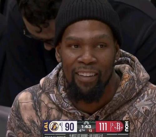 火箭終于贏一場不錯(cuò)的比賽,阿杜終于笑了,這種笑有種叔叔看到了侄子的進(jìn)步的笑。