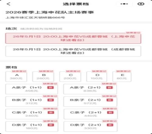據(jù)購票平臺信息,申花vs蓉城比賽的主隊票已售罄,客隊票150元檔售罄,260元檔還有余票。