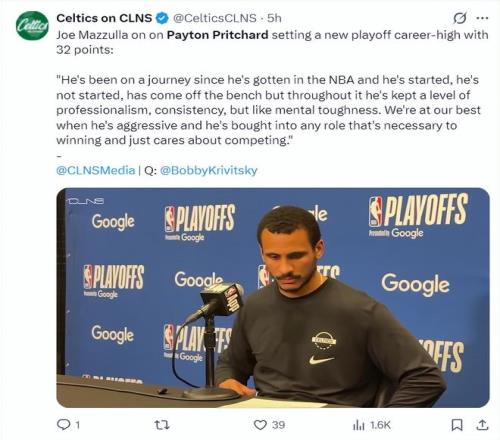 賽后普理查德進(jìn)入更衣室時馬祖拉還主動獻(xiàn)上了擁抱,這就是對大功臣的優(yōu)待。
