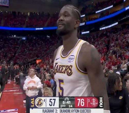 北京時間4月27日,在湖人客場對陣火箭的首輪G4,第三節(jié)中段湖人中鋒艾頓因為肘擊申京脖頸部位,導致直接被吹罰二級惡意犯規(guī)驅逐離場。艾頓被驅逐之前,已經(jīng)12中9得到19+10的兩雙數(shù)據(jù),成為湖人前兩節(jié)半表現(xiàn)最出色的球員。
