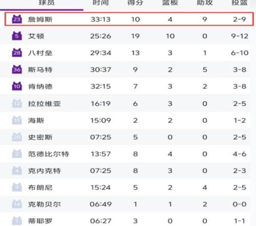 作為湖人沖擊季后賽的定海神針,年滿41歲的老詹本就背負(fù)著超負(fù)荷體能運(yùn)轉(zhuǎn)壓力,卻在這一場生死戰(zhàn)中徹底迷失手感。整場鏖戰(zhàn)多節(jié),9次出手僅命中2球,僅得10分,進(jìn)攻端幾近“零輸出”,完全無法支撐起全隊(duì)得分重任。