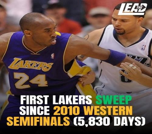 據(jù)湖媒統(tǒng)計,湖人上次橫掃對手是2010年西部半決賽4-0爵士,距今已經(jīng)5830天。