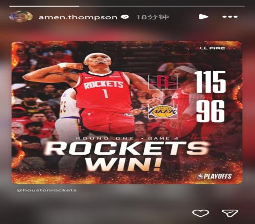 賽后,阿門(mén)·湯普森在INS上轉(zhuǎn)發(fā)了火箭官方曬出的本場(chǎng)贏球海報(bào),封面人物是自己。