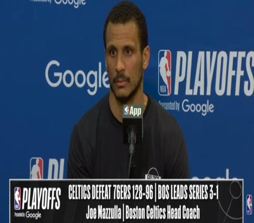 體育播報(bào)4月27日宣 NBA季后賽首輪G4,凱爾特人客場(chǎng)128-96大勝76人,總比分3-1拿到賽點(diǎn)。賽后喬·馬祖拉接受了媒體采訪,以下為采訪全文。