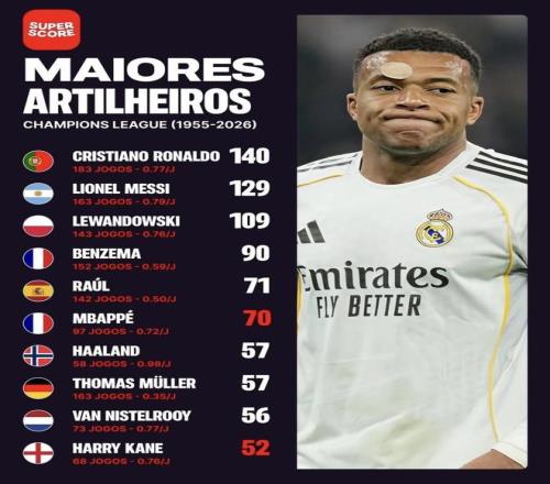 但想沖擊前二,尤其是C羅,那是真難。梅西129球,C羅140球,差距分別是59球和70球。這種量級的差距,根本不是靠一兩個高產(chǎn)賽季就能填平的,這要求他連續(xù)很多年都必須保持在頂級水平。歐足聯(lián)歷年數(shù)據(jù)里,C羅拿過單賽季17球、16球、15球的數(shù)據(jù),梅西也有多次12到14球的高產(chǎn)年。姆巴佩本賽季進(jìn)15球,說明他具備這種單賽季沖高的能力,但要把“具備能力”變成“好多年一直保持”,中間還得抗住傷病、球隊?wèi)?zhàn)績起伏、狀態(tài)下滑這些現(xiàn)實(shí)因素。新賽制能幫他拉近距離,但抹平不了這道門檻。