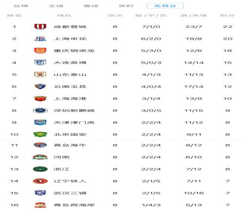 4月26日晚,中超聯(lián)賽第8輪,上海申花客場3比0戰(zhàn)勝河南隊(duì),豪取聯(lián)賽五連勝。申花目前積10分,排在積分榜第五位,這場勝利不僅延續(xù)了球隊(duì)的強(qiáng)勁勢頭,也讓“罰分掩蓋真實(shí)實(shí)力”的話題成為中超焦點(diǎn),若沒有賽季初被扣10分的處罰,申花將以20分位列積分榜第二,僅落后領(lǐng)頭羊蓉城2分。