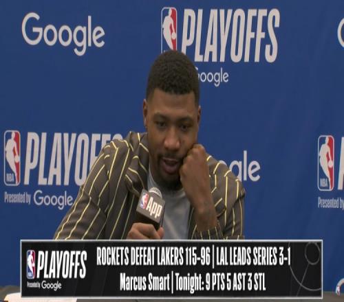 體育播報(bào)4月27日宣 在今天結(jié)束的一場(chǎng)季后賽中,湖人以96-115不敵火箭,大比分3-1領(lǐng)先。賽后,湖人球員馬庫(kù)斯·斯瑪特出席了新聞發(fā)布會(huì)。以下是完整版采訪內(nèi)容。