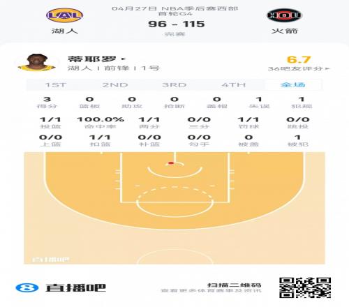 湖人次輪36號秀阿杜·蒂耶羅 登場6.5分鐘