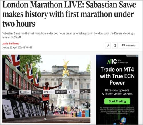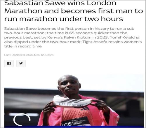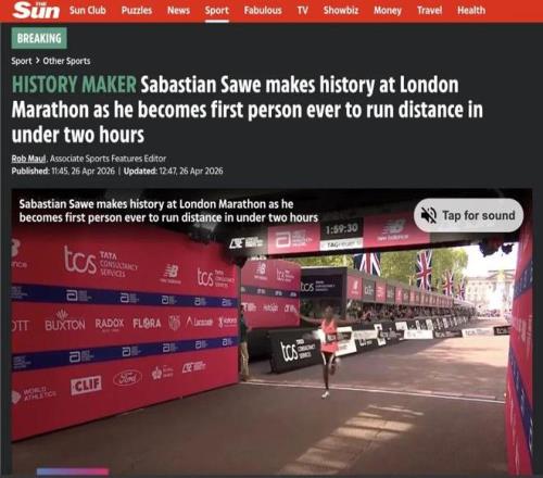英國《獨(dú)立報(bào)》在直播報(bào)道中稱,薩維以1小時(shí)59分30秒完成2026年倫敦馬拉松,打破了長期被視為不可能完成的2小時(shí)壁壘。報(bào)道指出,這場(chǎng)比賽堪稱“史上最快馬拉松”:亞軍凱杰爾查同樣跑進(jìn)2小時(shí),第三名基普里莫的2小時(shí)00分28秒也快過原世界紀(jì)錄。