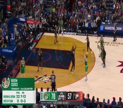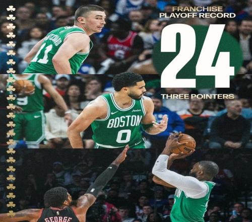 這場比賽,恩比德復(fù)出,并且拿了全隊(duì)最高的26分,但即使如此,76人依然擋不住凱爾特人兇猛的火力——?jiǎng)P爾特人全隊(duì)三分53中24,單場24記三分刷新了隊(duì)史季后賽紀(jì)錄,距離追平NBA歷史紀(jì)錄也只差1記(23雄鹿、16騎士共同保持)。
