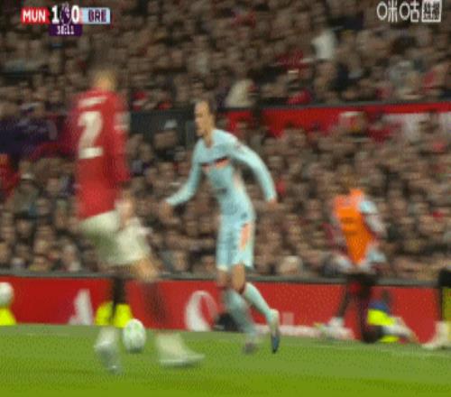 第35分鐘,曼聯(lián)后場(chǎng)左側(cè)丟球,瓦塔拉突破后一腳直塞,曼聯(lián)后防線出現(xiàn)巨大空檔,伊戈?duì)枴さ賮喐陠蔚稓⑷虢麉^(qū),扣過(guò)鏟球補(bǔ)防的達(dá)洛特,自己滑倒了錯(cuò)失良機(jī)↓