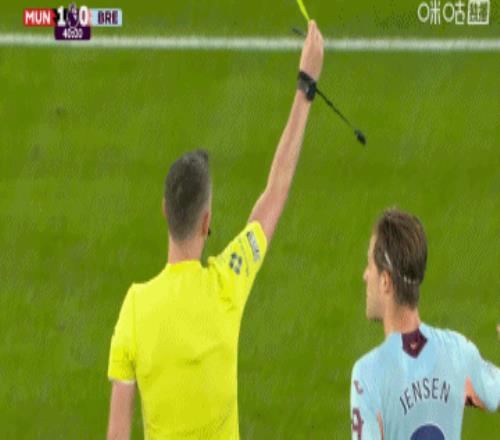 第90+6分鐘,布倫特福德左側(cè)長(zhǎng)距離界外球扔出,科林斯禁區(qū)內(nèi)推倒卡塞米羅,隨后不滿主裁判的判罰,吃到黃牌↓
