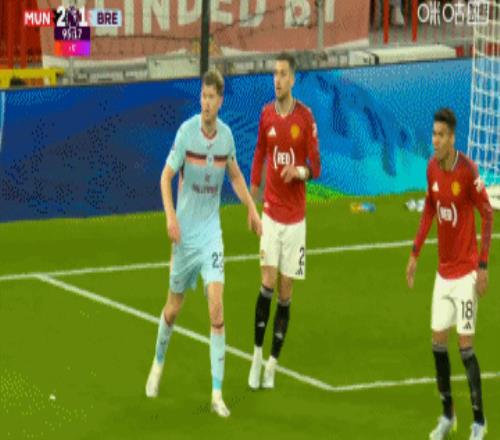 體育播報04月28日宣 曼聯(lián)vs布倫特福德尾聲階段,卡塞米羅連續(xù)兩次與柯林斯對抗,制造犯規(guī)。