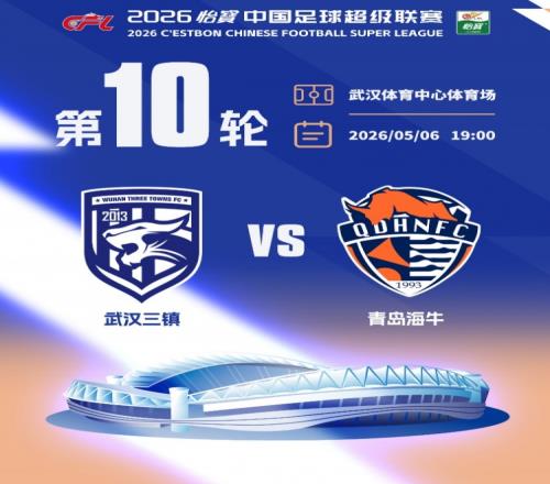 五一假期,武漢三鎮(zhèn)將在2026怡寶中超聯(lián)賽第10輪中迎戰(zhàn)青島海牛。