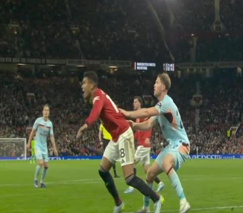 在下半場(chǎng)進(jìn)入傷停補(bǔ)時(shí)階段之后,只有一球領(lǐng)先優(yōu)勢(shì)的曼聯(lián)急需穩(wěn)住局面,此時(shí)卡塞米羅在一次爭(zhēng)頂當(dāng)中利用了內(nèi)森-科林斯手上的動(dòng)作當(dāng)即倒地,從而讓主裁判克里斯-卡瓦納判罰了對(duì)手的犯規(guī)。