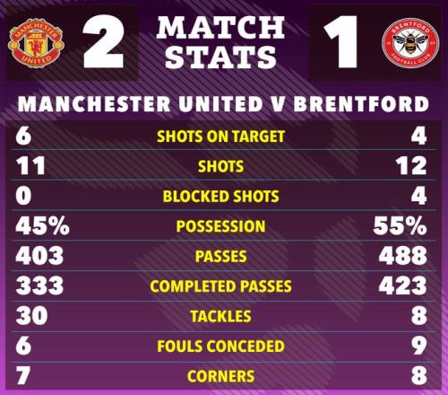 比賽第88分鐘,布倫特福德的馬蒂亞斯·延森打入神仙球,將比分差距縮小為1-2。但為時(shí)已晚,曼聯(lián)最終有驚無(wú)險(xiǎn)地守住一球優(yōu)勢(shì),如愿在主場(chǎng)全取3分。不過(guò),B費(fèi)和盧克·肖下半場(chǎng)出現(xiàn)傷病,其中葡萄牙鐵人堅(jiān)持打滿了全場(chǎng),但胖肖傷退。