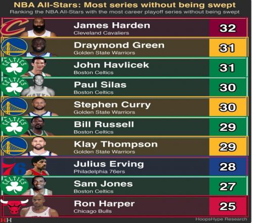 從未被橫掃過的球員誰打的系列賽最多哈登32輪第1追夢2庫里4 Instagram 2026-04-28 08:39:32 詹姆斯·哈登 32輪德雷蒙德·格林 31約翰·哈夫利切克 31保羅·塞拉斯 30斯蒂芬·庫里 30比爾·拉塞爾 29克萊·湯普森 29朱利葉斯·歐文 28薩姆·瓊斯 27羅恩·哈珀 25 籃球NBA騎士哈登勇士庫里追夢獨行俠克萊 上一篇: 鬧麻了!76人單個系列賽兩次至少輸?shù)?2分是隊史首次下一篇: 塔圖姆父親曬與兒子&孫子三代同框照3人年齡分別是47歲28歲8歲