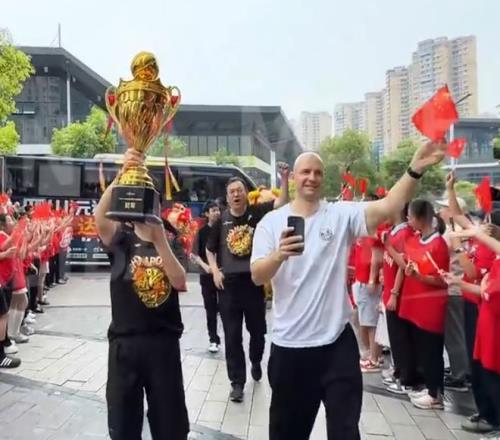 四川女籃管理層、教練組、一些隊員帶著總冠軍獎杯下大巴,球迷們一直都在歡呼,作為四川人這一幕我都要落淚了。只能感嘆四川女籃與四川男籃的差距實在是太大了,四川女籃誰也贏不了,四川男籃誰也贏不了。