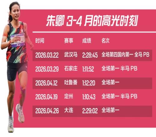 本想趁前8公里沒有坡的時(shí)候,先跟朝鮮選手跑一段。但跟了200米后,朱卿迅速調(diào)整了自己的作戰(zhàn)策略——我不敢跟了。心里想,算了,跑自己的,先把國內(nèi)第一先保住,然后沖一下國際前三。