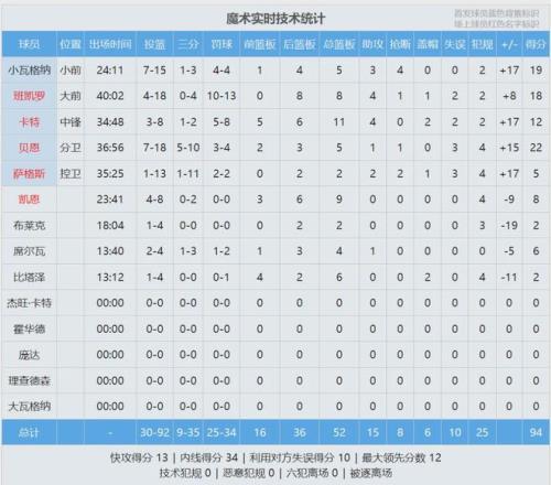 最后來(lái)看看比賽數(shù)據(jù),你覺(jué)得魔術(shù)能黑八成功嗎?