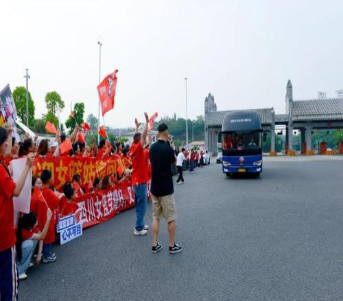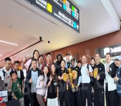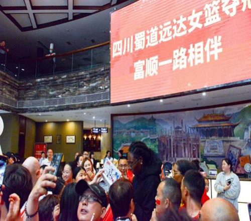 四川女籃將士們乘坐大巴抵達(dá)的后,迎接隊伍的人群敲鑼打鼓,還有人在舞獅慶祝。教練組和隊員代表們走下大巴,現(xiàn)場的球迷齊聲喝彩。四川女籃主教練迪薩爾一邊揮舞小紅旗,一邊用手機(jī)錄制視頻。