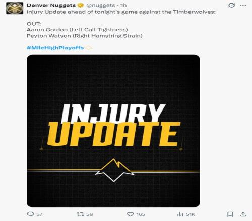 阿龍-戈登左小腿傷勢無法出戰(zhàn),沃特森是肌肉拉傷繼續(xù)缺席。